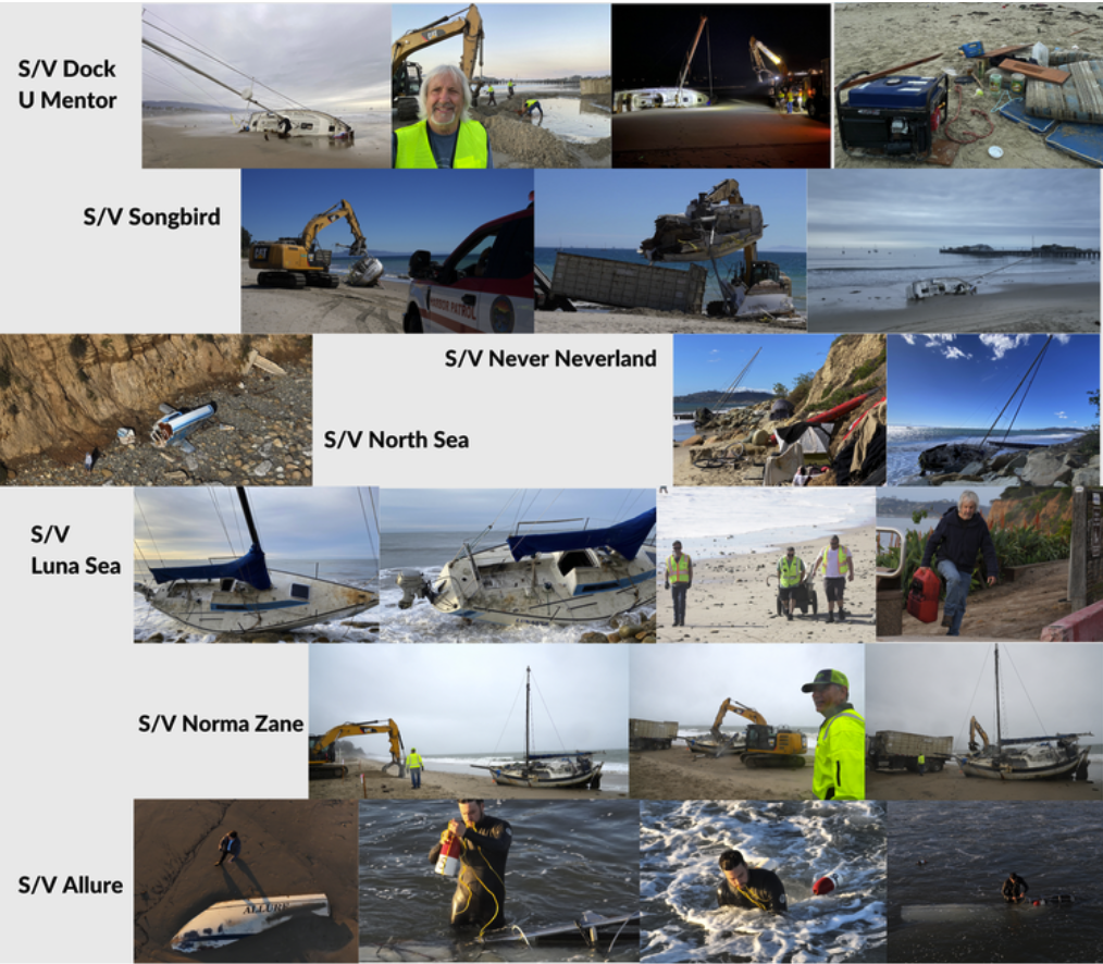 On During the fall and winter of 2022-2023, Heal the Ocean took a major role in handling the problem of derelict boats adrift along the south Santa Barbara county coastline, some of them crashing onto the beaches to create significant hazards of pollutants and debris. HTO oversaw all clean-ups and HTO Program Director Harry Rabin physically removed polluting items from crashed wrecks himself. Rabin rallied the man-power and ensured toxic materials were discarded from the wreckage of six vessels. Thanks to the prompt action of Harry, with the assistance of Brian Borgatello from MarBorg Industries, wreckages that may have otherwise still been on the beach have been removed with funding from HTO, and help from the City of Santa Barbara and MarBorg Industries.