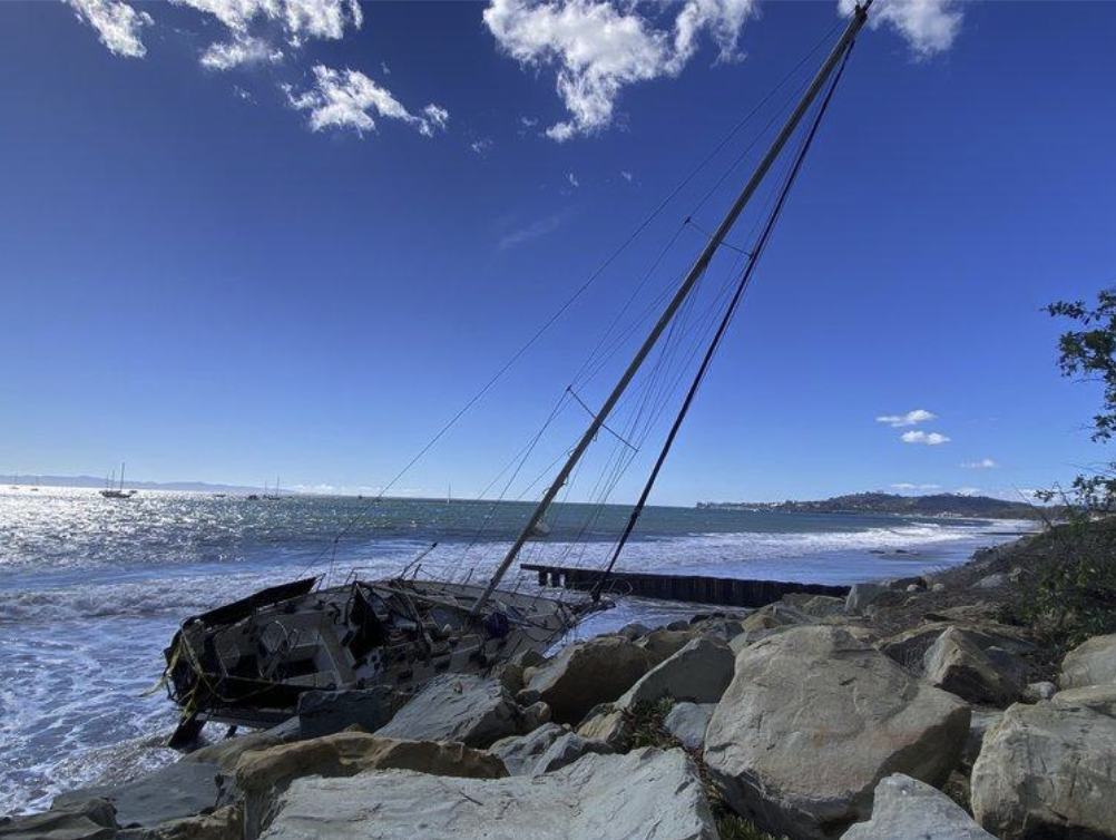 This week, 3 more boats broke free of their moorings off East Beach and landed at various places on our coastline, including the East Beach Bathhouse and below “Graveyards,” near Butterfly Beach.
