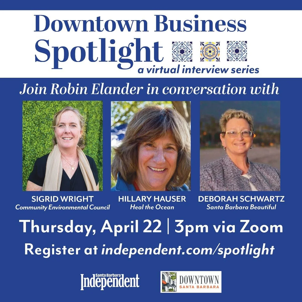 Join Heal the Ocean today, Thursday, April 22, 2021, at 3 PM as we celebrate Earth Day 2021 with a virtual "Environmental Awareness" Downtown Business Spotlight interview hosted by Downtown Santa Barbara and the Santa Barbara Independent! HTO Executive Director Hillary Hauser will join CEC's Sigrid Wright and Deborah Schwartz of Santa Barbara Beautiful in a Zoom panel for a lively discussion and to answer your questions.