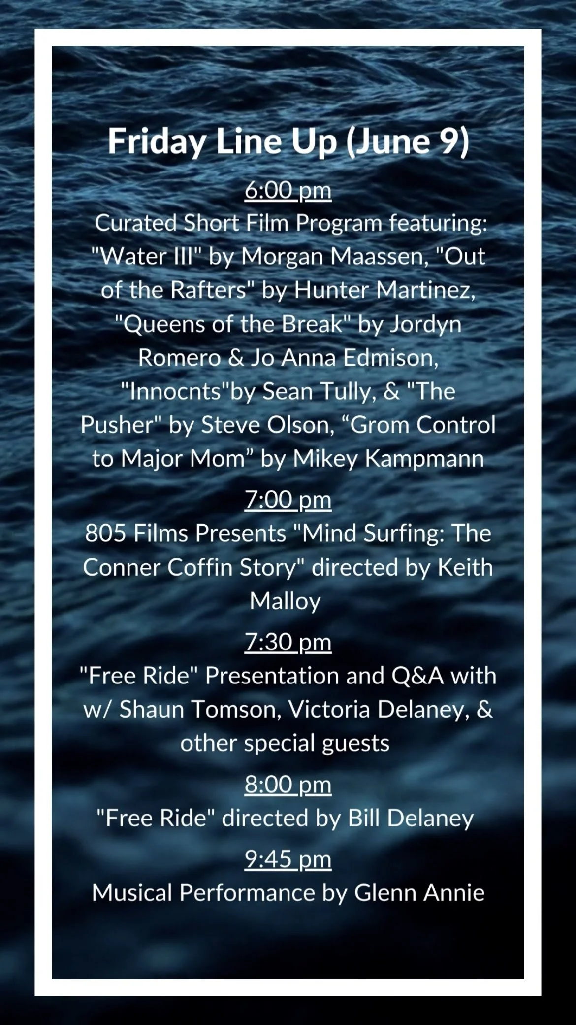 We look forward to seeing you at the Santa Barbara Surf Film Festival, where we can come together to celebrate the beauty and joy of the ocean, and rub elbows with the surfing Greats! CLICK HERE for VIP tickets to the exclusive 21+ Lounge in the Lobero Courtyard.