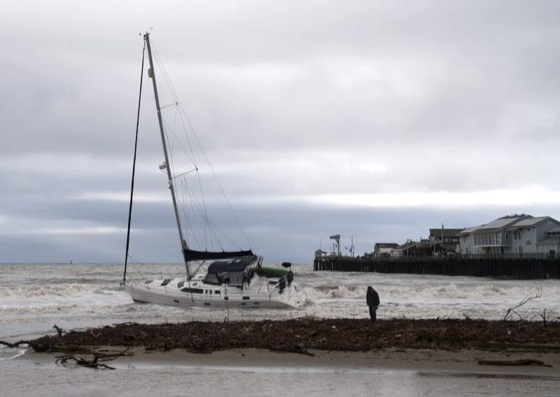 During the recent “Atmospheric River” storm that hit Santa Barbara fiercely, three boats washed ashore from Fool's Anchorage, the area off East Beach which is not a secure place for any boat to anchor. Storms generally toss these often-untended boats to shore.
